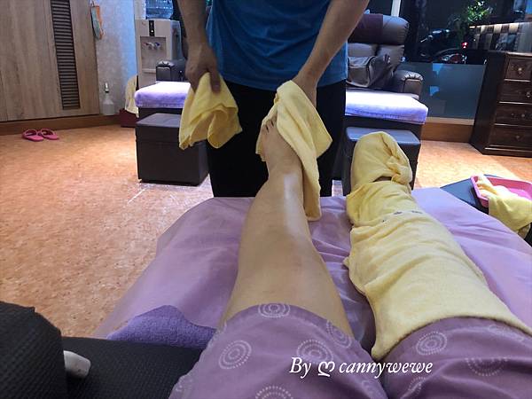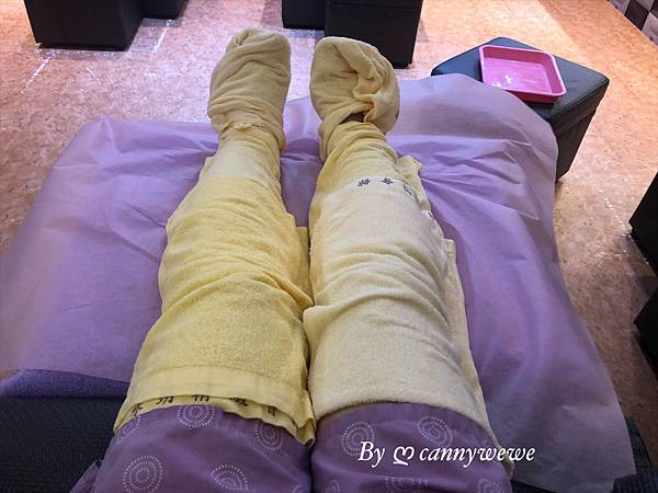 師傅會表演甩毛巾,把熱熱的毛巾包裹在整個腿部,一起放鬆~