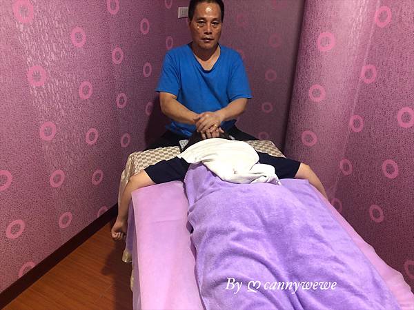 長時間用電腦打字,背部的地方有點突出,師傅用力的按壓,讓背部舒緩,