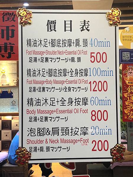 先奉上價目表~~~貼心的附上有英文和日文的價目表,我想這裡剛好是龍山寺是觀光勝地的關係