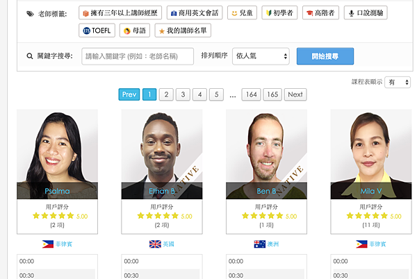 每一位老師都有基本介紹,可以觀看老師的影片,評論及學員推薦,看老師是不是適合你(我發現老師年紀都好小啊)