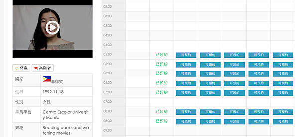 電腦介面的右邊部分,為預約上課日期及時間,還可以選擇老師資歷和評價