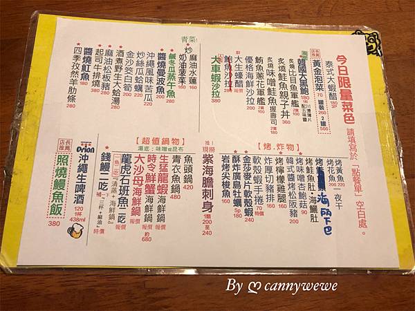 菜單如上,菜單好像有更改過,多了滿多種料理,價位在100~200之間