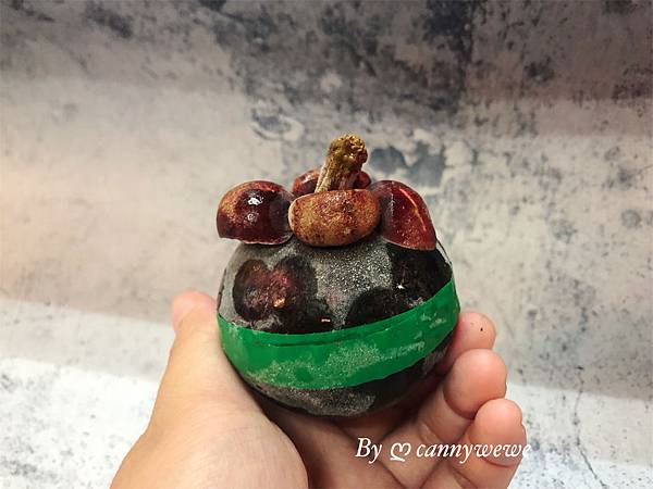 把膠帶撕掉以後,把果核往上一搬,就可以看到我們的山竹果肉了
