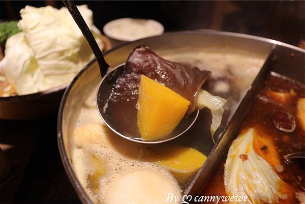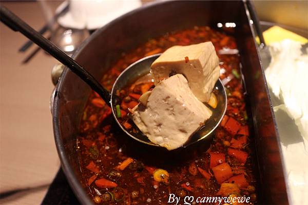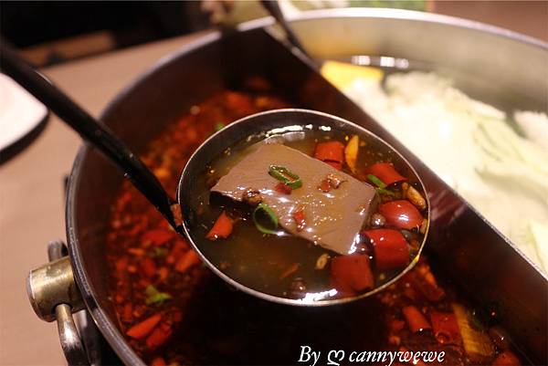 鍋內已經有附上六塊鴨血和六塊豆腐,兩人吃很足夠,雖然鍋底不能續,但是鍋底的鴨血和豆腐真的很入味~