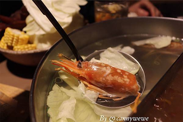 天使紅蝦蝦頭的部分是精華,這就是為什麼這一份套餐(最愛海是你)是搭配時蔬鍋而不是酸菜白肉鍋,