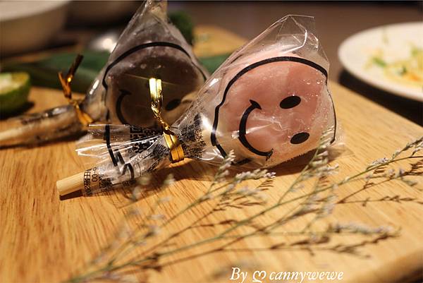 飯後小甜品,可愛的迷你一口冰,有三種口味,草莓/巧克力/情人果