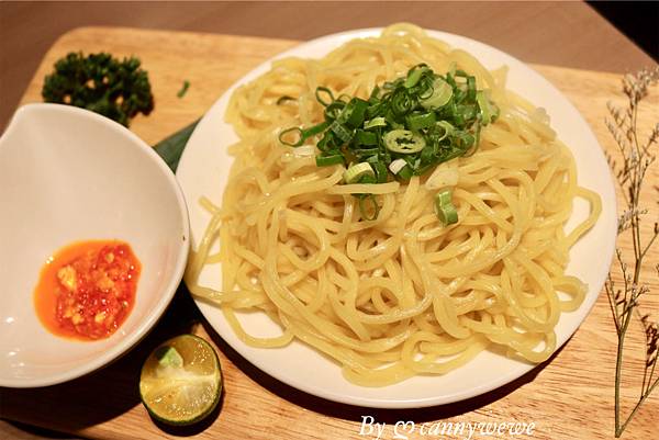 套餐有麵含有飯,這個麵很推吃起來很Q彈,建議搭配上面的辣椒醬及蔥花,單點也要來一份~~