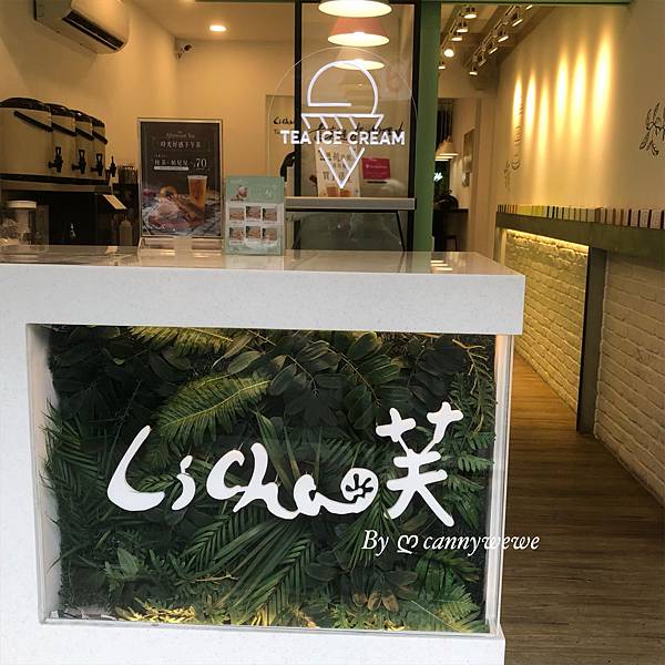 這家店也有綠葉的元素,人造石櫃台,目的是呼籲自然、無添加,親近大自然