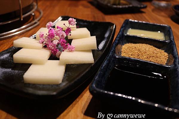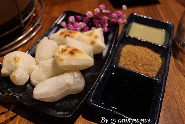 燒烤的甜點必吃是烤麻吉,沾醬的部分給得很大方,也是提供了黑糖醬/花生粉/煉奶