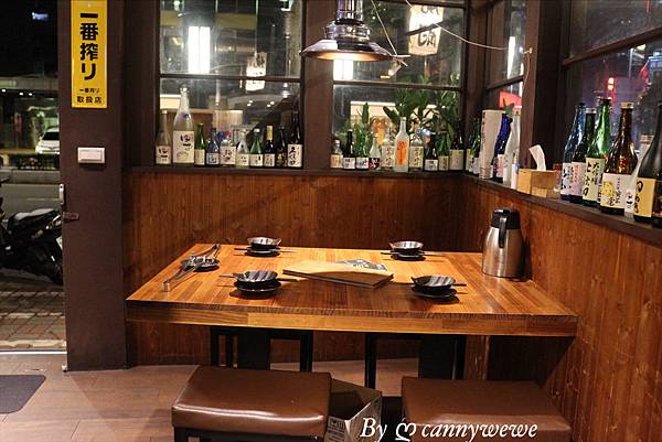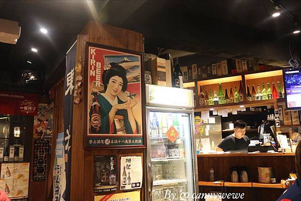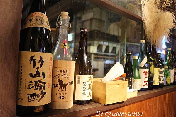 這家有著濃厚的日本風味的居酒屋,裝潢很有置身在日本的感覺,店內使用各種日本的酒瓶佈置,(小小研究,裝飾品都是空瓶已經喝光光了,哈)