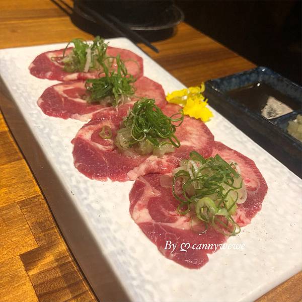總共有四片,每片牛舌上面都佐上店家特製的蔥鹽,牛舌是老饕的最愛,