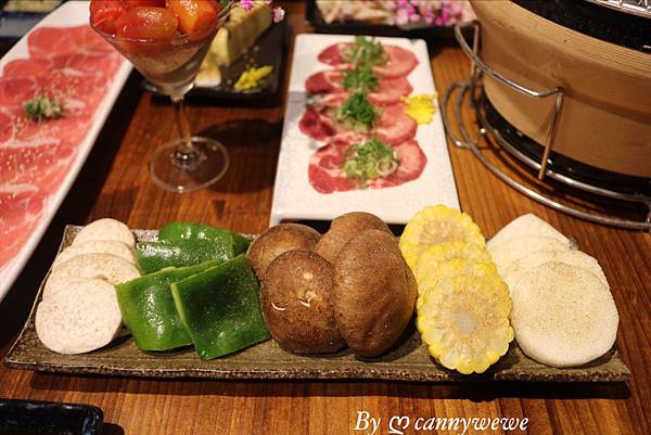 野菜拼盤中,好喜歡肥嫩嫩的飽滿的香菇,香菇烤到後面有出水,沾上一點烤肉醬非常好吃,