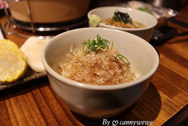 這個是冷烏龍!!!比起湯飯我更喜歡這碗冷烏龍, 由上往下看,滿滿的是柴魚片,上面佐上青蔥配色,