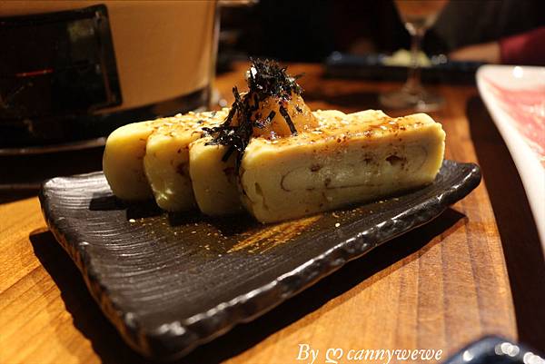 這裡的玉子燒,總共有四大片,厚度可以看到滿厚的,味道是屬於偏甜,和我以往在日本吃得不太一樣,