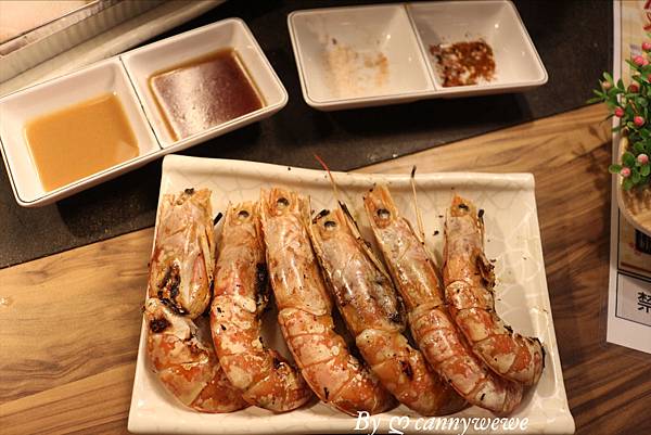 豬肉則是升級成,高級的松阪豬、雞肉則多了調味過的雞翅膀、雞軟骨,海鮮有白蝦、花枝...等等,