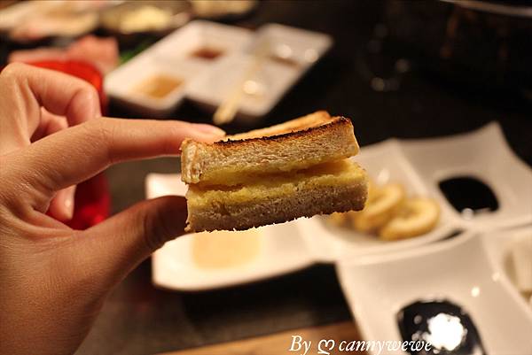 奶酥醬搭配烤的酥酥的吐司,是好吃的組合,如果還有胃可以吃吃看,好像在吃早餐,哈哈哈