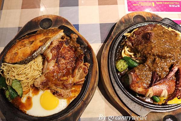 餐點這樣上桌了,因為貪心都想要吃吃看,我們都點海陸雙拼,兩個願望一次滿足,
