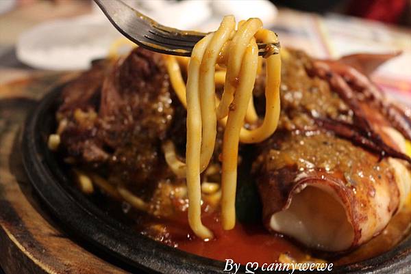 是滿經濟實惠的,所有的料把鐵板麵佔的滿滿,是一個男生也可以吃很飽的狀態
