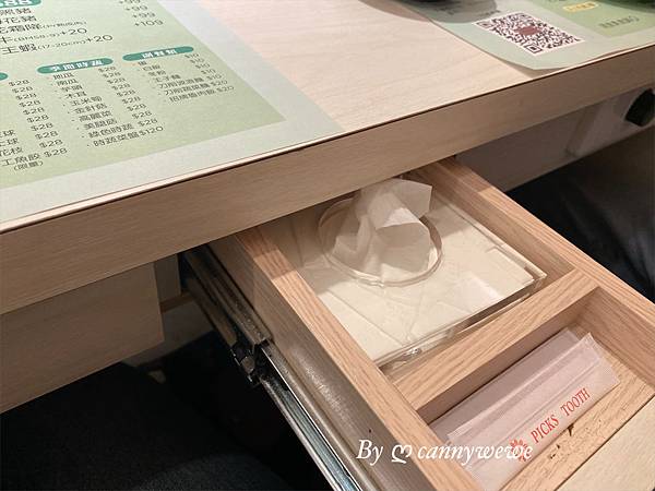 餐巾紙和牙籤部分,收納在抽屜,店員貼心的小提醒,