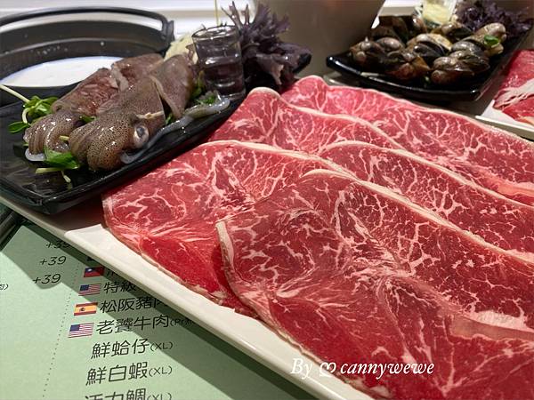 $358,梅花豬肉、帶皮培根豬、精選雪花羊、滑嫩土雞柳、特級牛肩肉 (松阪豬肉、老饕牛肉+$20) 可搭海鮮(鮮蛤仔、鮮白蝦、活力鯛、國宴魚、極鮮小卷)
