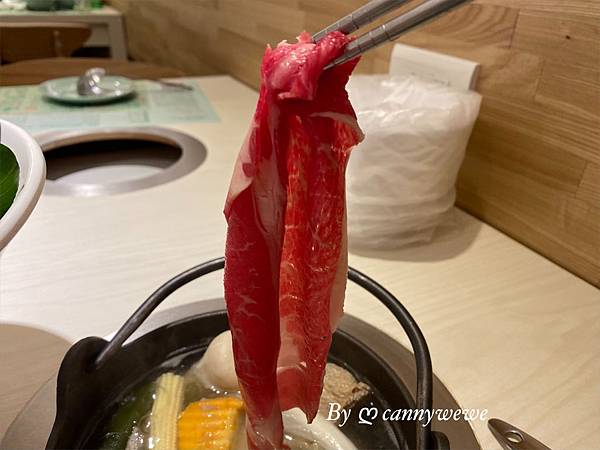 總共有6片,涮個幾秒,肉片呈現粉嫩的粉紅色,這個如果敢吃生一點,我想也不是問題,
