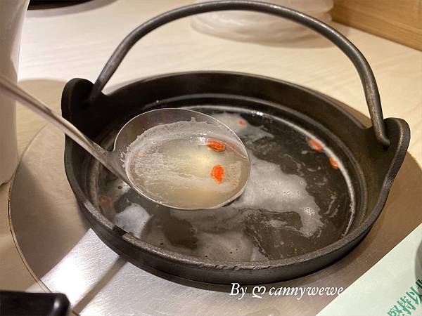 鍋物的提鍋很是可愛,小小的一鍋,先品嚐湯頭原味