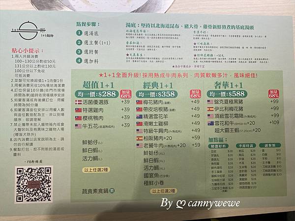 餐點的價位$288~$588不等,1+1組合