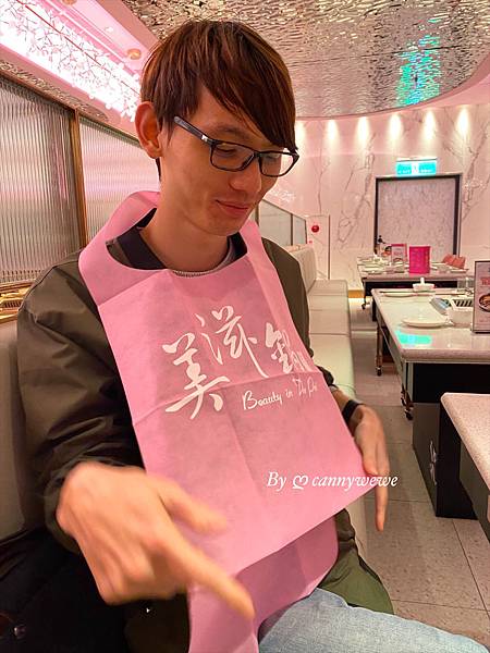 入座後,很貼心附上粉色圍兜兜,可以預防用餐時噴到湯汁,或用髒衣服