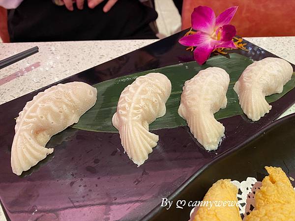 豆腐樣子很討喜,忍不住會想要點一盤來試試,新鮮的魚肉打成魚漿加上豆漿,將豆腐製成水中悠遊的魚,
