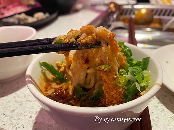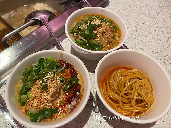 由服務人員幫忙製成不同種口味的芝麻擔擔麵,香辣芝麻擔擔麵,