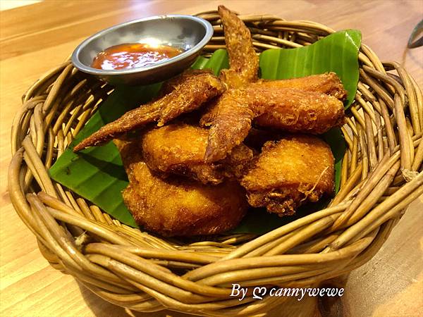 因為醃製過得雞翅,炸得酥脆,偏油膩,建議熱熱吃,搭配泰式酸辣醬,