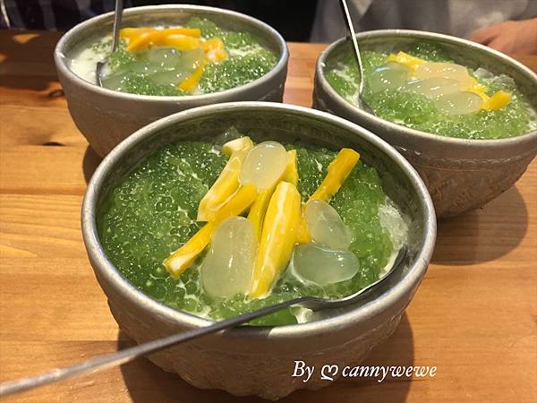 少不了南洋風味的椰漿,這個西米露不是白色半透率,用綠色帶點半透明,看起來有點像海葡萄,多了點繽紛感,
