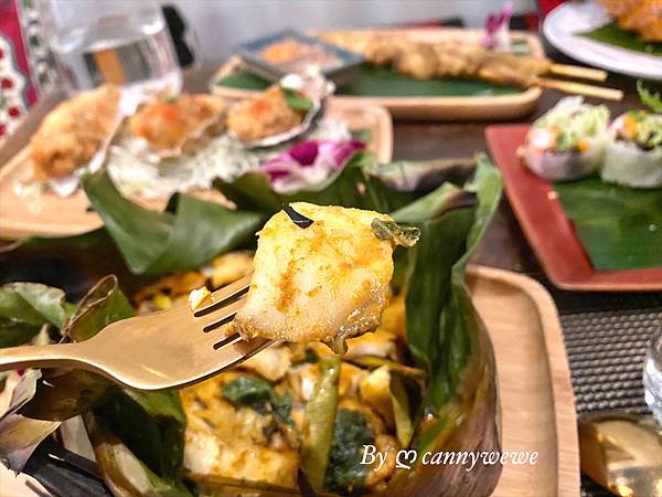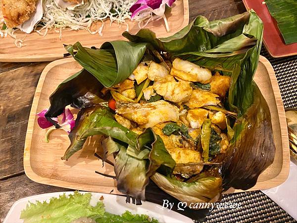 用泰式香料包裹在芭蕉葉中炭烤,魚肉本身沒有味道,主要是吃烤進入的香料味,用香料層層包裹入鮮嫩的魚肉,