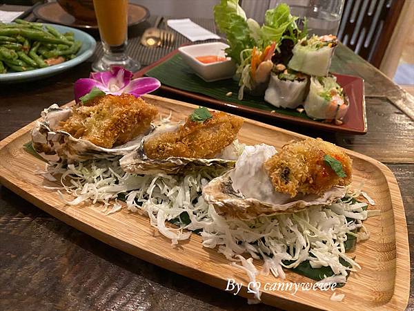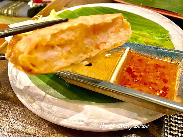 我們不僅不是趁熱吃,隔了一下下才吃,還是外酥內軟沒有油膩感,上面也是沾取泰式酸辣的醬汁,